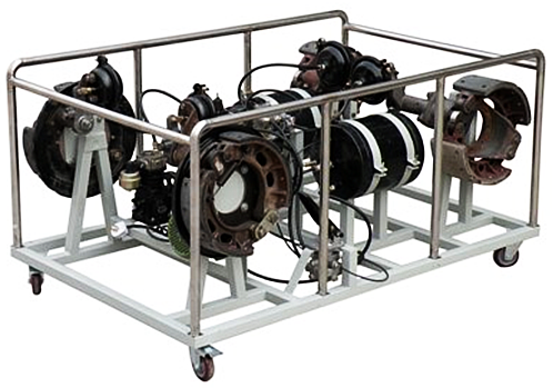 氣壓制動系統(tǒng)實驗臺采用實物汽車氣壓制動系統(tǒng)總成兩部分組成;制動系統(tǒng)零件置于機架之上,可移動臺架、組成。通過實訓臺的演示,可清楚了解內部的結構與功能,便于學生較快地掌握氣壓制動系統(tǒng)的構造和原理,提高學生對氣壓制動系統(tǒng)的初步認識,使學生了解氣壓制動系統(tǒng)起到更直觀更深入的教學目的,是各汽車學校對氣壓制動系統(tǒng)理論和維修實訓的理想的教學設備。