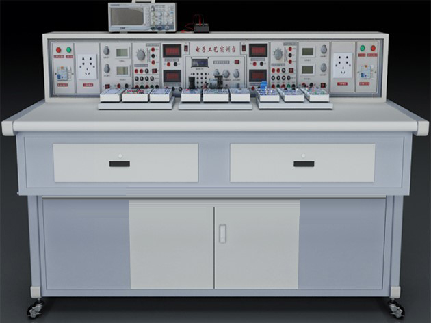 實訓(xùn)桌為鐵質(zhì)雙層亞光密紋噴塑結(jié)構(gòu),桌面為防火、防水、耐磨高密度板,結(jié)構(gòu)堅固。實訓(xùn)桌下方設(shè)有柜子,可以放置實訓(xùn)模塊和工具以及資料等,還設(shè)有四個帶剎車的輪子,便于移動和固定。