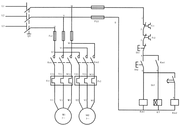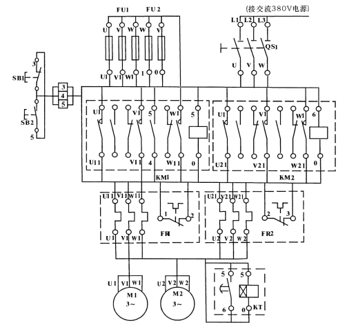 | M1、M2 | 三相鼠籠式異步電動機 | 380V(Y/△) | 2 |